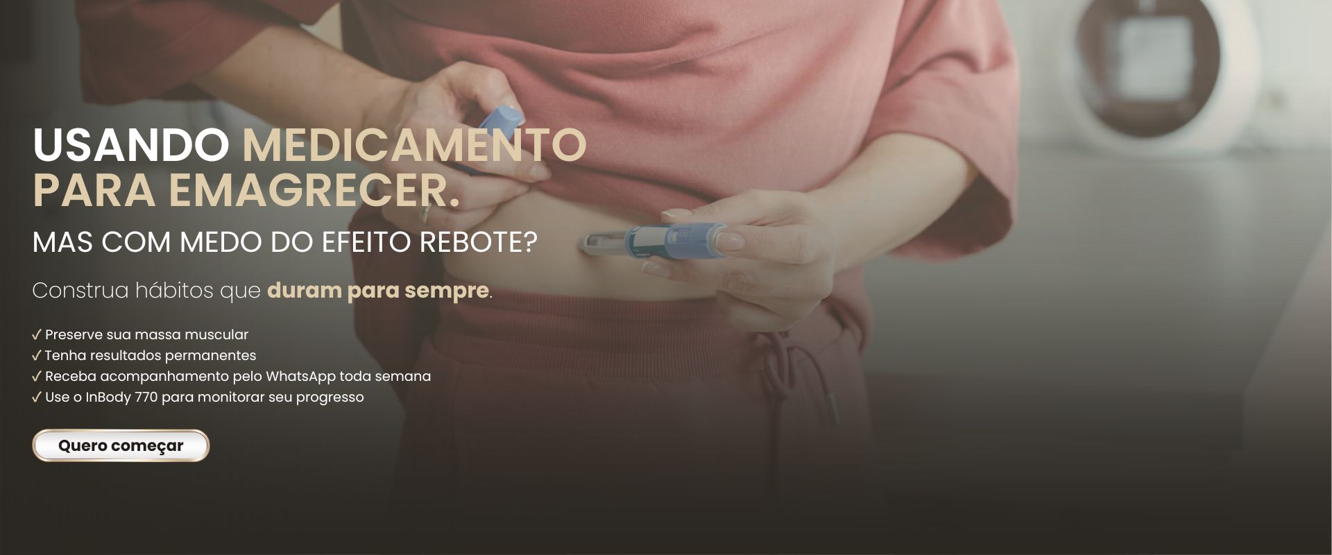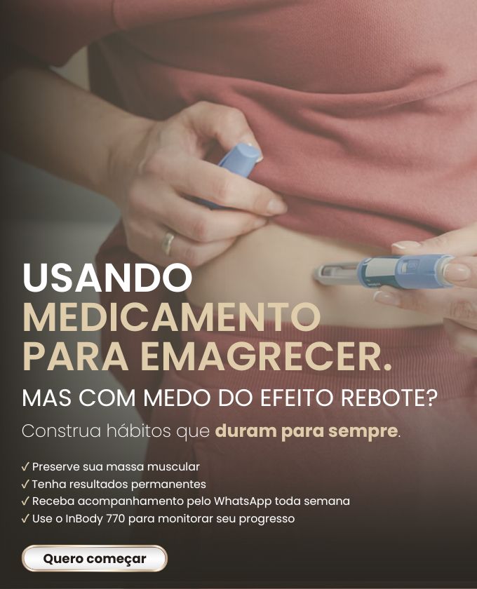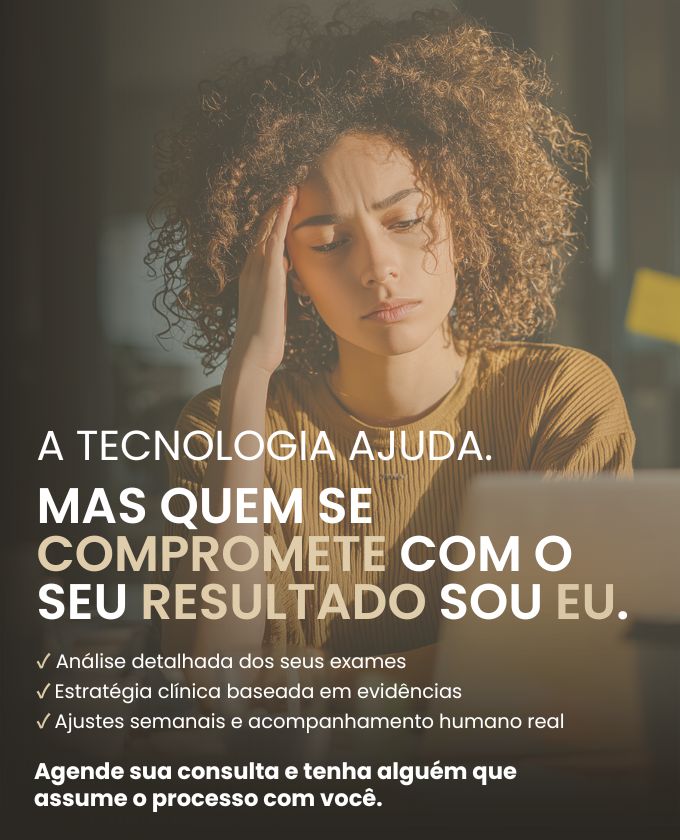 Minha consulta vai muito além de um plano alimentar: é uma aula sobre o seu corpo, onde analisamos exames, avaliamos a composição corporal com InBody 770 e dobras cutâneas, e traçamos um plano estratégico que evolui com você.